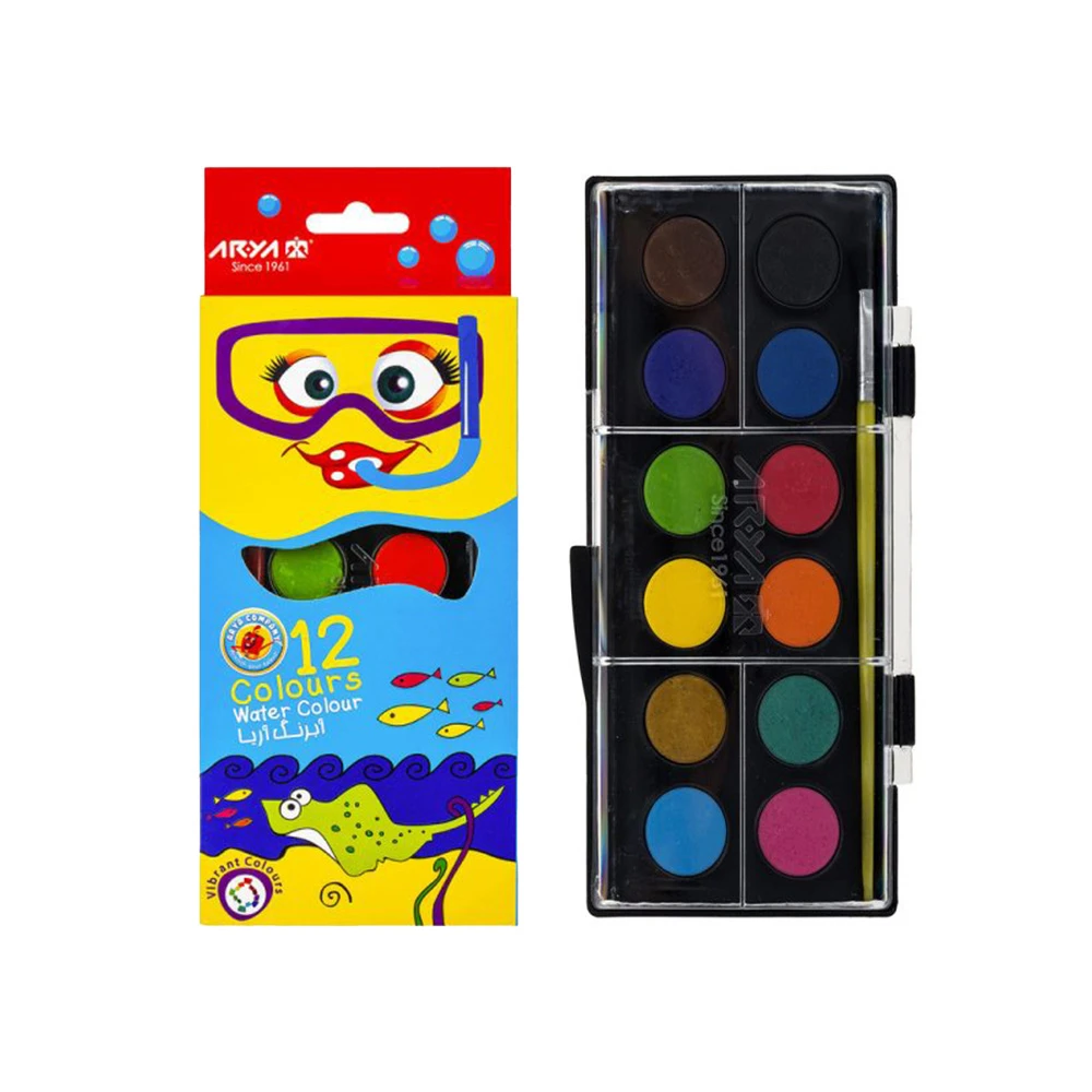 آبرنگ ۱۲ رنگ جعبه طلقی کوچک طرح کمان (برند آریا)