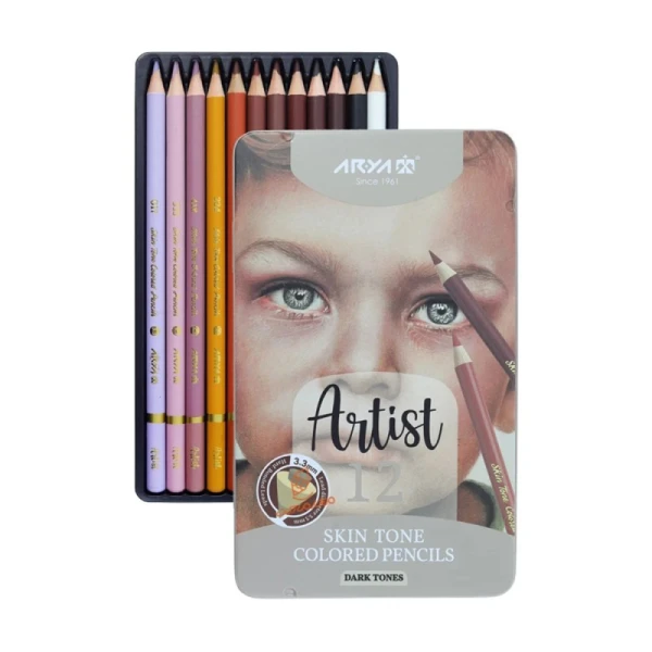 مداد رنگی جعبه فلزی رنگ پوست تیره سری آرتیست (برند آریا)