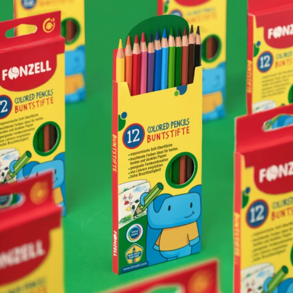 مداد رنگی فونزل به شکل شش ضلعی و مقاوم در برابر شکستگی با ترکیب رنگ مناسب و زنده.