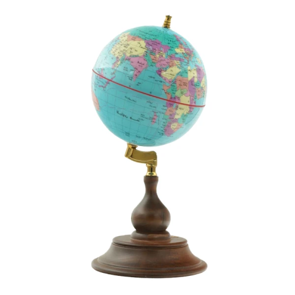 دارای نقشه دقیق فارسی و انگلیسی با رنگبندی شفاف برای تشخیص آسان مرزهاست. پایه چوبی، تعادل و جلوه ظاهری زیبایی به محصول داده و چرخش نرم کره، مشاهده سطح زمین را دلپذیر میکند. سایز مناسب ۱۴ سانتیمتری آن باعث میشود برای میز تحریر یا فضای آموزشی کاملاً مناسب باشد و حس کلاسیک و اصیل در دکور ایجاد نماید.