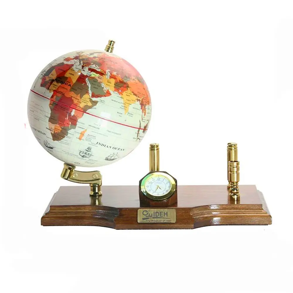 کره جغرافیایی سایز ۱۴ چوبی ساعتدار (برند ایده)