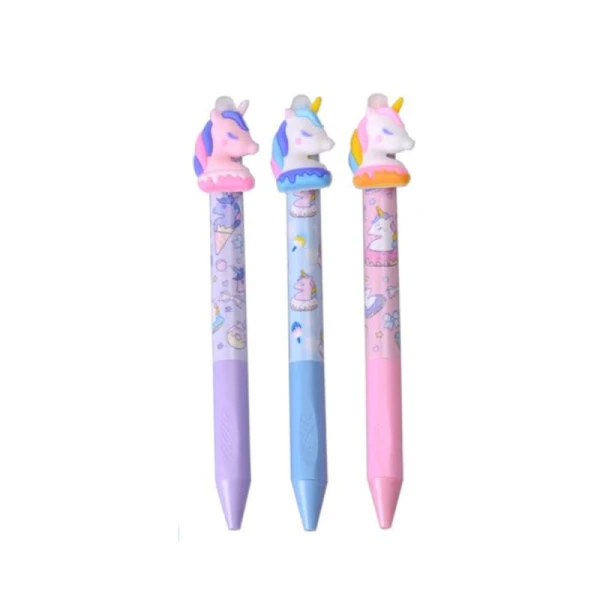این خودکار دارای سر یونیکورن سیلیکونی زیبا و بادوام است، نوشتاری نرم و یکنواخت دارد، قابلیت پاک شدن بدون اثر جوهر را دارد، بدنه ارگونومیک و سبک دارد، و در رنگبندیهای شاد و کودکپسند عرضه شده است.