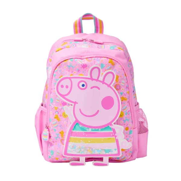 این محصول دارای طراحی برجستهی شخصیت پپا پیگ با جزئیات رنگی و چاپ براق است، بندهای قابل تنظیم و نرم راحتی در حمل را فراهم میسازد، جیبهای کناری برای بطری یا وسایل کوچک دارد و زیپهای مقاوم آن باز و بسته شدن روانی را ایجاد میکند. رنگهای شاد و هماهنگ، انرژی مثبت و حس شادی را در استفادهی روزمره منتقل مینماید.