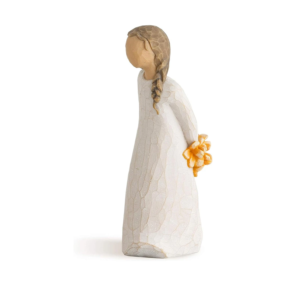 مجسمه For You از برند Willow Tree لحظهای ساده و درعینحال پرمعنا را به تصویر میکشد؛ دختری که با لبخندی آرام و دستهگل کوچکی پنهان در پشت دست، صمیمیت و قدردانی را بیکلام هدیه میدهد. بافت تراشخورده و رنگهای ملایم، حس خلوص را زنده میکند و این اثر را به انتخابی ارزشمند برای ابراز محبت، سپاس یا یادبود لحظات مهربانی بدل میسازد.