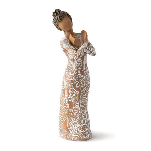 این مجسمه با الهام از موسیقی و هنر، بیان احساسی قدرتمندی دارد و بهعنوان نماد ارتباط و الهام شناخته میشود. طراحی دستساز و تزئینات نقشدار، جلوهای هنری و منحصربهفرد ایجاد میکند. رنگبندی گرم آن باعث هماهنگی آسان با دکورهای متنوع میشود و برای هدیهای مفهومی بسیار مناسب است.