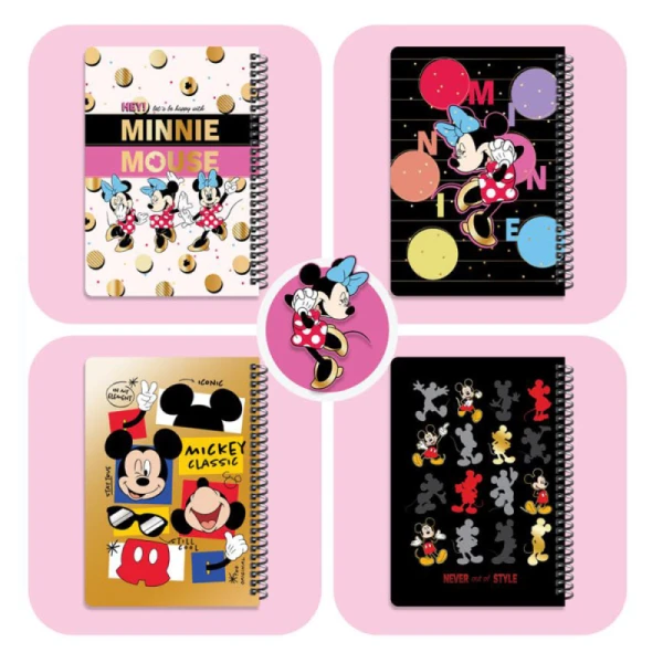 دفتر 100 برگ وزیری لانگو با جلد سخت و صحافی سیمی فلزی، طراحی کارتونی دلانگیز میکی و مینی، چهار مدل متفاوت، کاغذ سفید باکیفیت برای نوشتار روان و ماندگار؛ انتخابی بینقص برای مدرسه، دانشگاه و یادداشتهای روزانه که زیبایی و دوام را همزمان دارد.