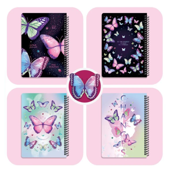 دفتر ۱۰۰ برگ سیمی جلد سخت با استیکر طرح پروانه (برند لانگو)