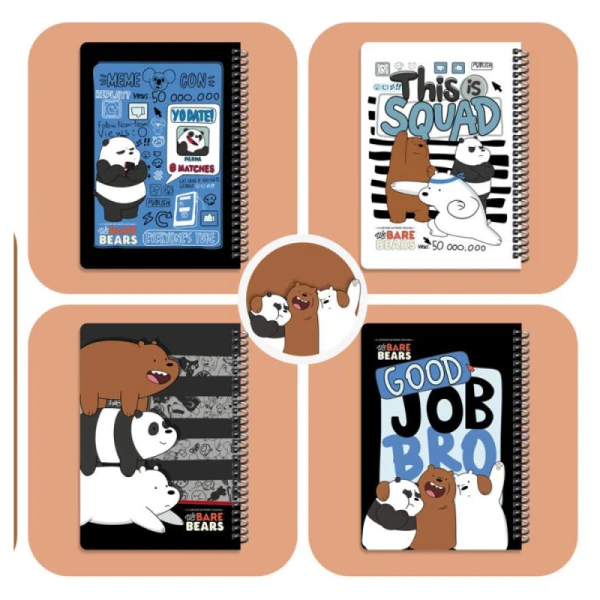 دفتر ۱۰۰ برگ سیمی جلد سخت با استیکر طرح سه خرس (برند لانگو)