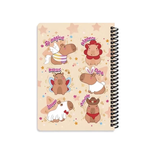 جلد سخت ضخیم و لمینت شده، از صفحات در برابر تا و آسیب محافظت میکند. طرحهای کارتونی شاد و فانتزی کپیبارا، رنگ و انرژی مثبتی به میز تحریر میافزایند. فنر دوبل مقاوم، باز و بسته شدن صفحات را آسان میسازد. همراهی استیکرهای رنگی، امکان تزئین دفتر و شخصیسازی صفحات را فراهم کرده و حس لذت از نوشتن را چندبرابر میکند.
