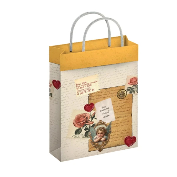 این فولدیبگ طراحی کلاسیک با جزئیات هنری دارد، چاپ آن با دقت بالا انجام شده و بدنهای مستحکم دارد. رنگهای کرم و طلایی جلوهای گرم و چشمگیر ایجاد کرده و دستههای طنابی مقاوم حمل آن را آسان کرده است.