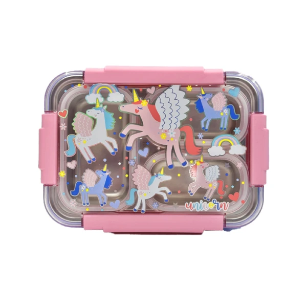 ظرف غذا مستطیل سه قسمتی استیل ۷۱۰ میل طرح یونیکورن (برند وست)