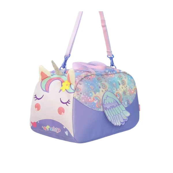 دارای بند دستی و دوشی قابل تنظیم، فضای داخلی مناسب برای وسایل روزمره، جنس ضدآب و سبک، و طراحی سهبعدی با بالهای پارچهای رنگی. زیپ روان و دوخت تمیز طول عمر بالا را تضمین میکند. ترکیب رنگهای صورتی، بنفش و آبی با طرح براق یونیکورن، حس جادویی دنیای خیال را به کودک منتقل میکند. قابل شستوشو و کاملاً مقاوم برای استفاده روزانه.