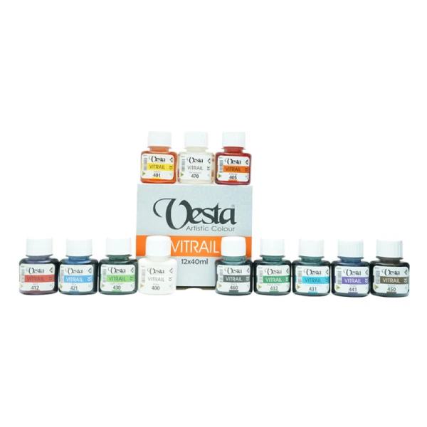 ست رنگ ویترای ۴۰ میل ۱۲ رنگ وستا، مجموعهای حرفهای و متنوع برای هنرمندان شیشه، سرامیک و وسایل تزئینی است. این رنگها با جلوهی شفاف و براق، جلوهای شیشهای خلق میکنند و پس از خشک شدن، سطحی مقاوم و درخشان ارائه میدهند. رنگهای غلیظ و باکیفیت وستا، برای خلق آثار هنری ظریف و چشمنواز انتخابی قابل اعتماد هستند.