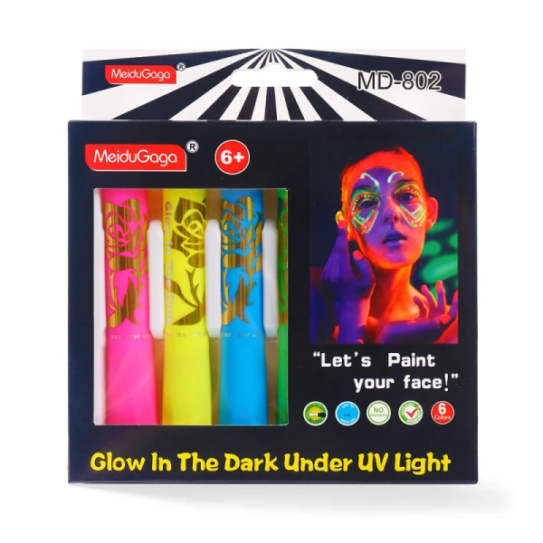 پاستل گچی نئونی گریم صورت Meidugaga با ترکیب رنگهای درخشان و درخشش زیبا زیر نور فرابنفش (UV) گزینهای ایدهآل برای جشنها، فستیوالها و اجراهای هنری است. این مجموعه ۶ رنگ نئونی با ساختار نرم و کرمی، پوشش یکنواختی بر روی پوست ایجاد میکند و بدون ایجاد حساسیت بهآسانی با آب و دستمال پاک میشود. طراحی پیچی هر پاستل استفادهی دقیق و بهداشتی را فراهم نموده و بافت بادوام آن برای ساعتها ماندگاری بالا دارد.