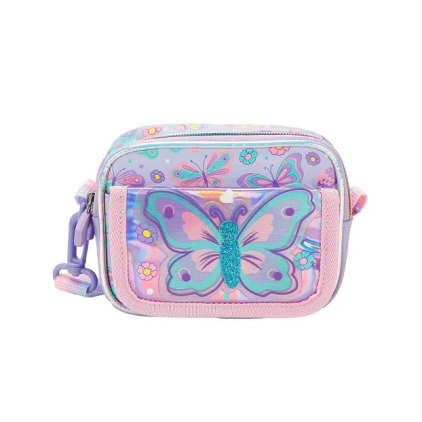 کیف رو دوشی دو لایه بزرگ طرح پروانه وست، با تصاویر رنگارنگ پروانهها و گلهای ظریف روی بدنه صورتی ملایم، لوازم روزمره و مدرسه را به مجموعهای شیک و پر از طبیعت تبدیل میکند و هر روز را به سفری پر از لطافت بدل میسازد.